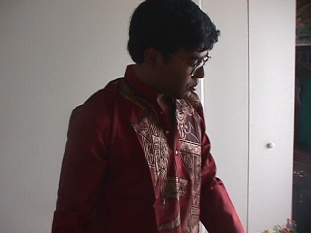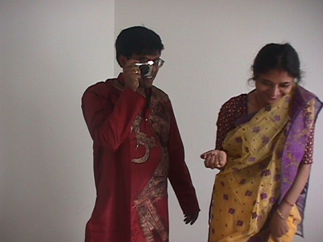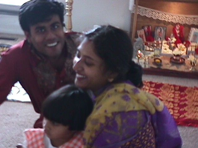 Recently( Feb 12th, 2000) we celebrated Saraswati puja at our home in Albuquerque, New Mexico. It was a pretty interesting making all the prasad on the same day ( Khichri, Veg curry, Payesh etc) and performing the puja. We had a few guests and the rest can be seen in the pictures. (click any of these for a larger picture)
